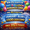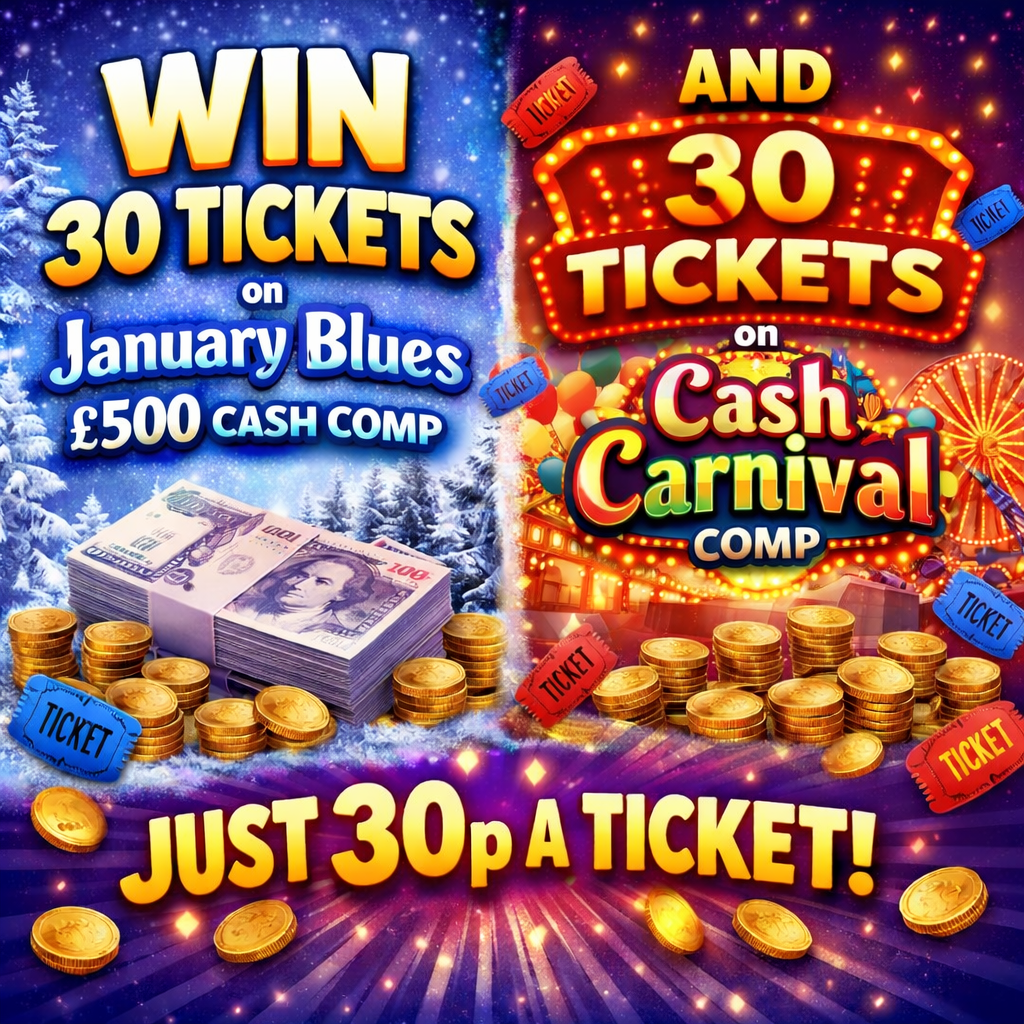Winner will win 30 tickets on the January Blues £500 cash comp and 30 tickets on Cash Carnival comp.